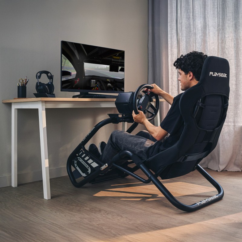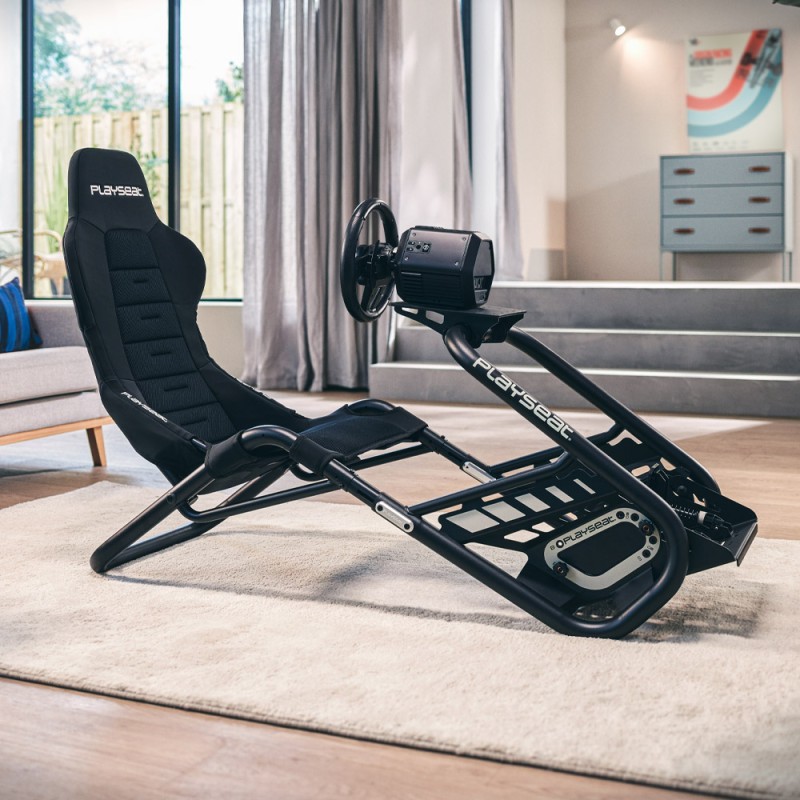 Design-ul stil cockpit deschis al Playseat Trophy este realizat din diferite aliaje de otel si detalii din aluminiu space-grade, rezultand un scaun de curse cat mai usor posibil si imbunatatind optimizarea pentru volane Direct Drive. De asemenea, ofera libertate deplina picioarelor pentru a executa tehnici precum heel-and-toe.